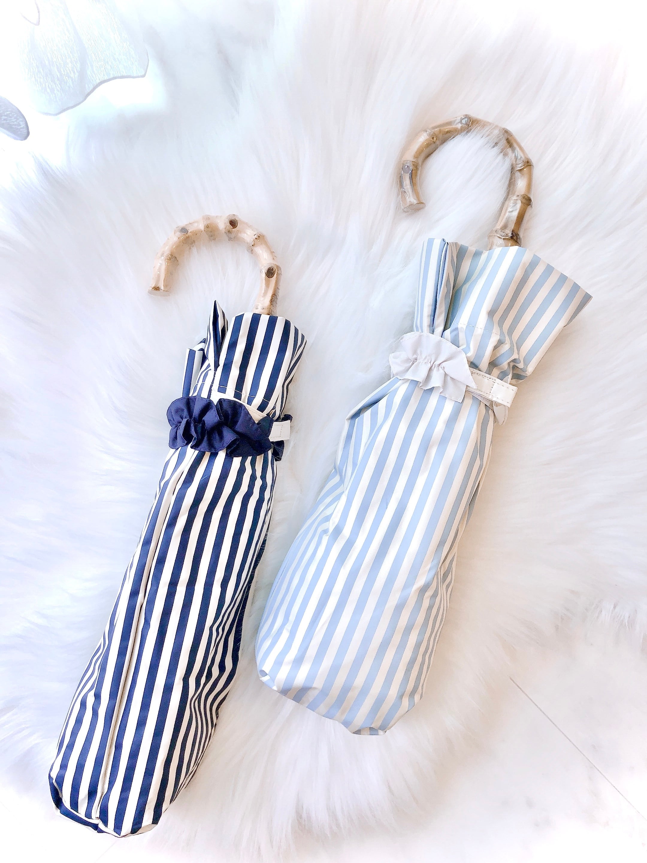 100%遮光.2段折りフリルストライプ晴雨兼用傘