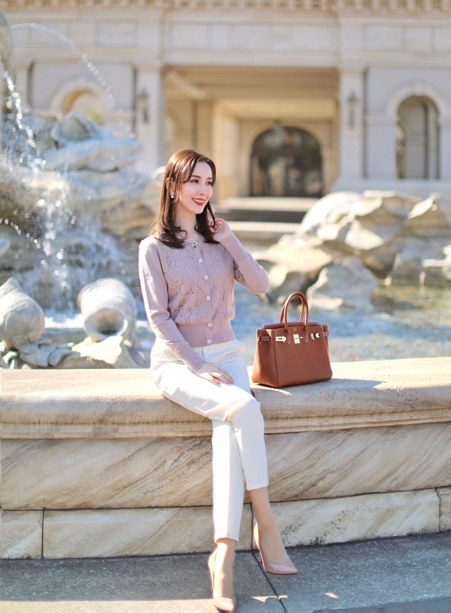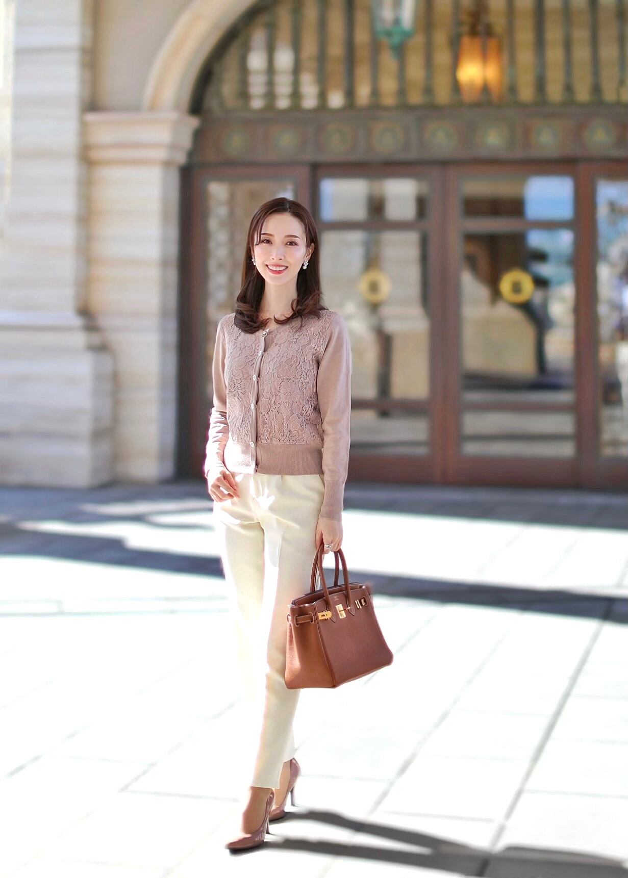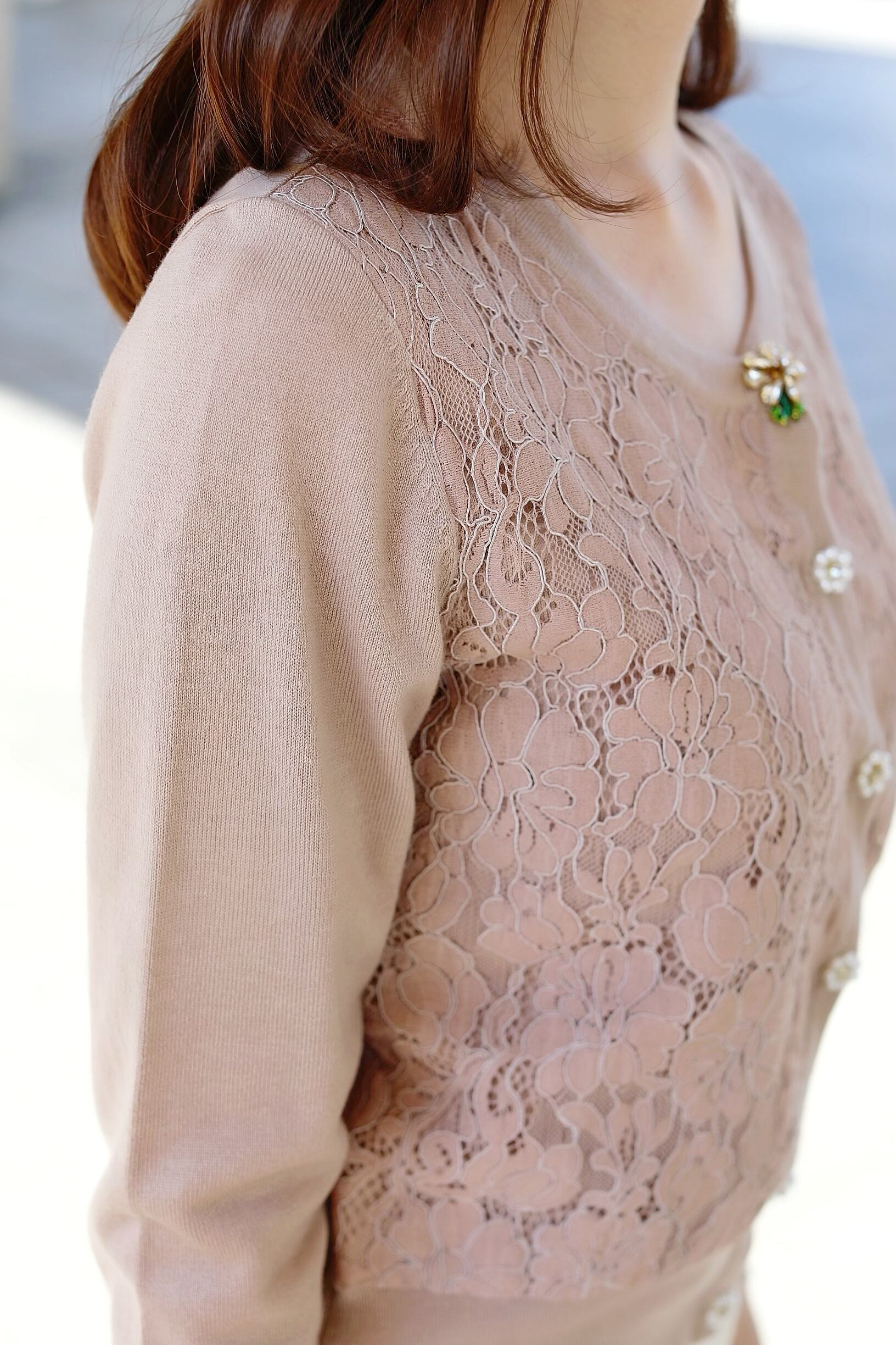 【Original 】フラワー×パールビジュー.レース切り替えビューティカーディガン ラテベージュ